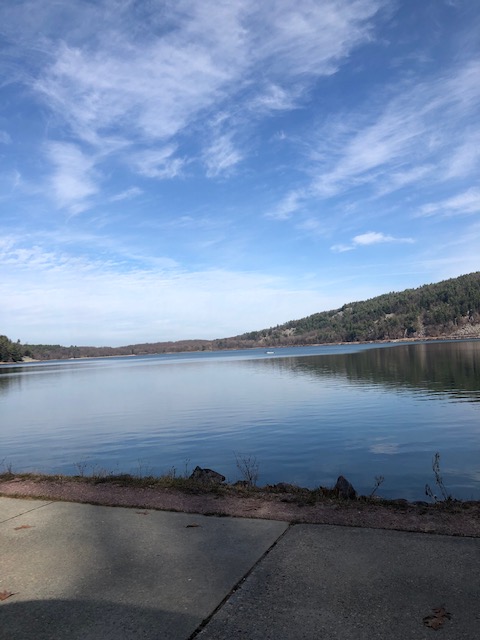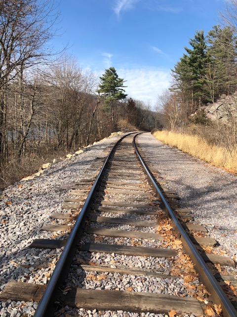 We walked on one easy trail and when we were unable to figure out how to get to a higher elevation, we walked along the lake on the railroad tracks.