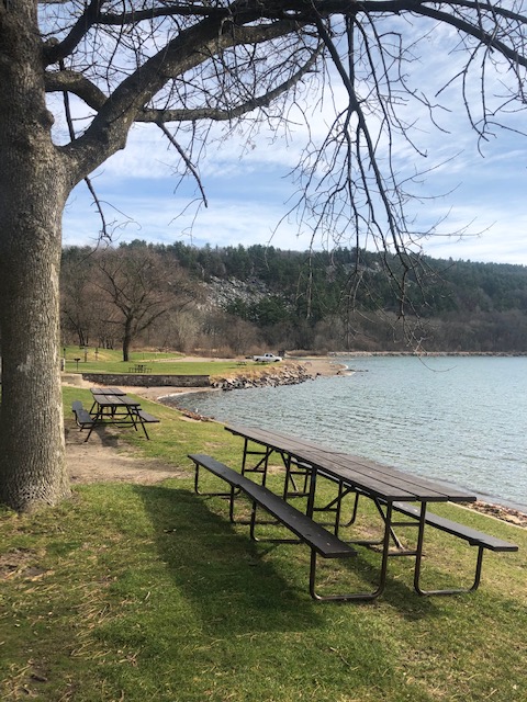 Devil’s Lake is located just south of Baraboo and at 9000 acres is the largest and most visited state park in Wisconsin. It is on the western edge of the last ice sheet deposited during the Wisconsin glaciation. It is known for its 500 feet high quartzite bluffs along the 360 acre lake.