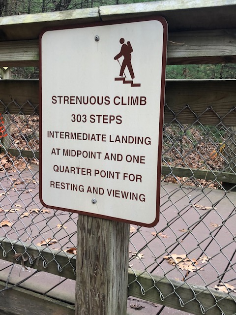 After lunch we moved on to Roche-A-Cri State Park at Friendship. The park, established in 1948 encompasses 600 acres. Roche-A-Cri comes from French words meaning “crevice in the rock.” The park has a 300-foot-high rock outcropping with a wooden stairway to the top. There are Native American petroglyphs and pictographs. The area with the petroglyphs was closed due to COVID-19 restrictions, as was the stairway. We hope to come back next year and visit those areas.